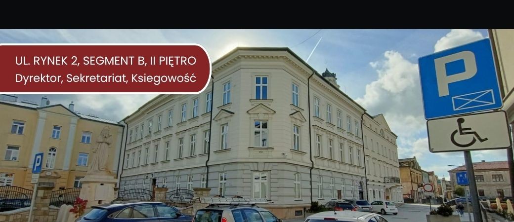 - ul. Rynek 2, segment B, II piętro (Dyrektor, Sekretariat, Księgowość).