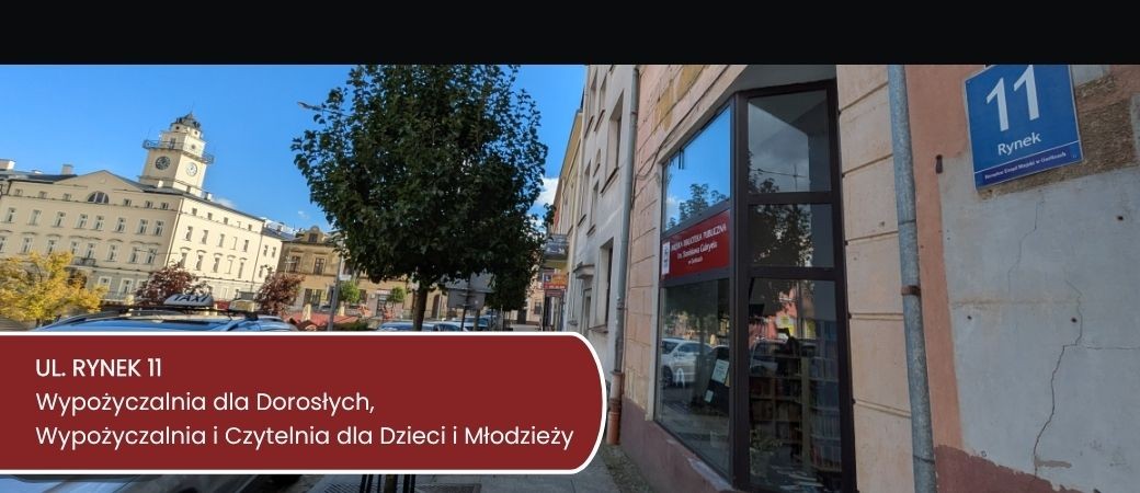 - ul. Rynek 11 (Wypożyczalnia dla Dorosłych, Wypożyczalnia dla Dzieci i Młodzieży, Czytelnia dla Dzieci i Młodzieży);