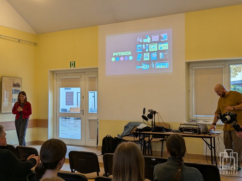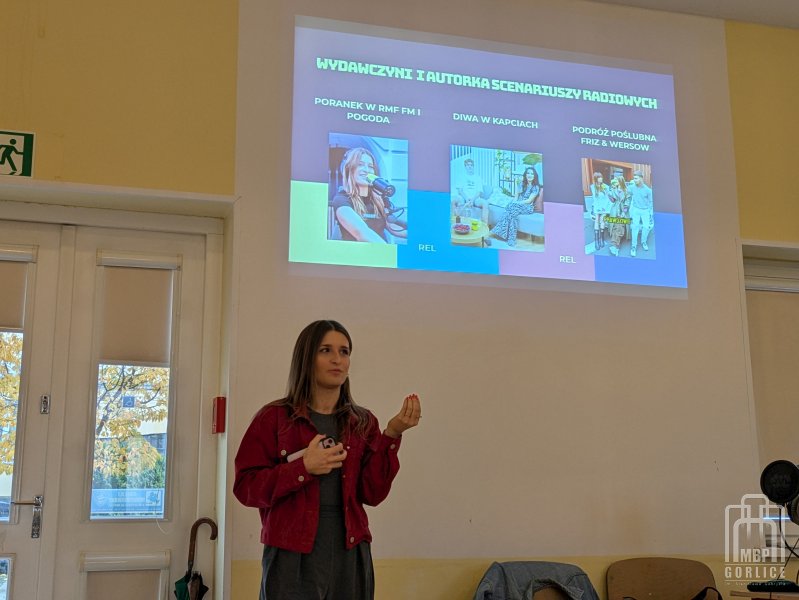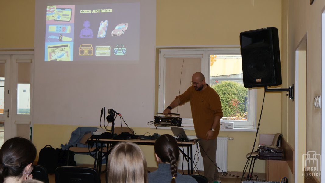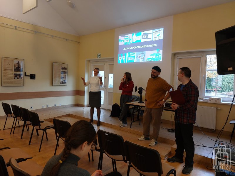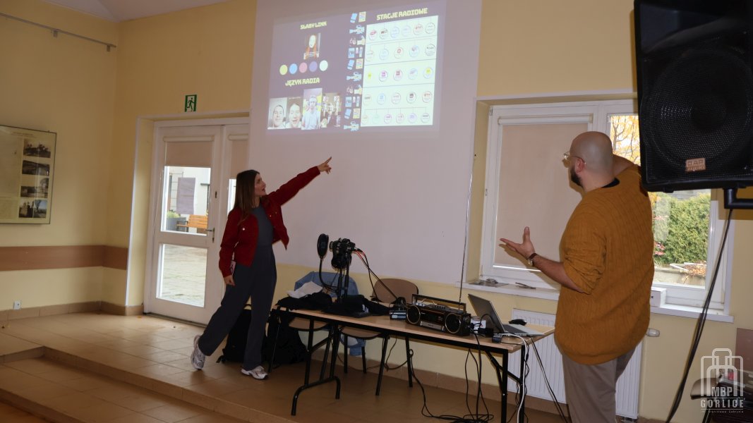 Wisienką na torcie projektu „Brak słów! Jak nie być bambikiem i zdobyć kompetencje językowe” okazały się warsztaty pt. „Język współczesnego radia. Narracja, struktura, informacja” poprowadzone przez Magdalenę Karwat-Marek i Mateusza Marka. Spotkania, w których wzięły udział dwie grupy młodzieży z I Liceum Ogólnokształcącego im. Marcina Kromera w Gorlicach, odbyły się w piątek, 24 października w Gorlicach, w sali przy Dziennym Domu Seniora.