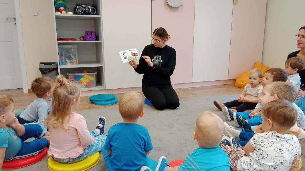 Zajęcia organizowane w ramach cyklu pn. „Pierwsze kroki… w świecie książek” dla dzieci z grup żłobkowych.