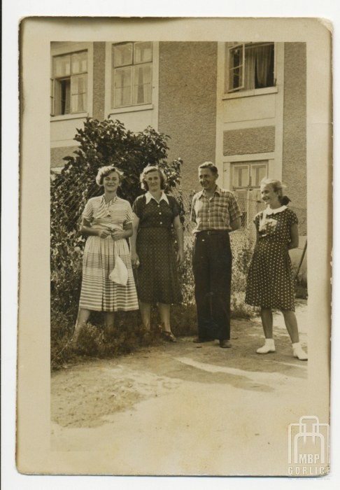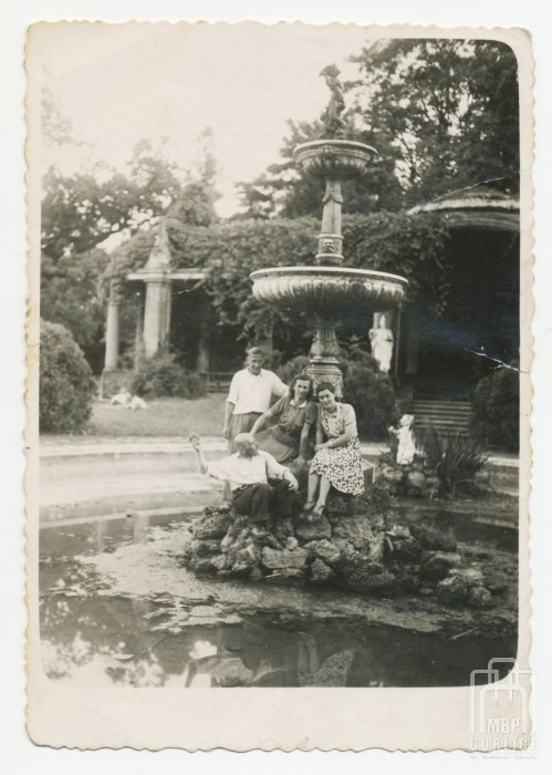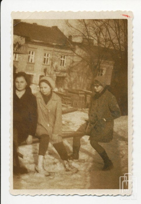 Przy pałacu Długosza w Siarach: siedzi nauczyciel matematyki p. Radwański, stoi ojciec obok mamy Ewy Krauze
