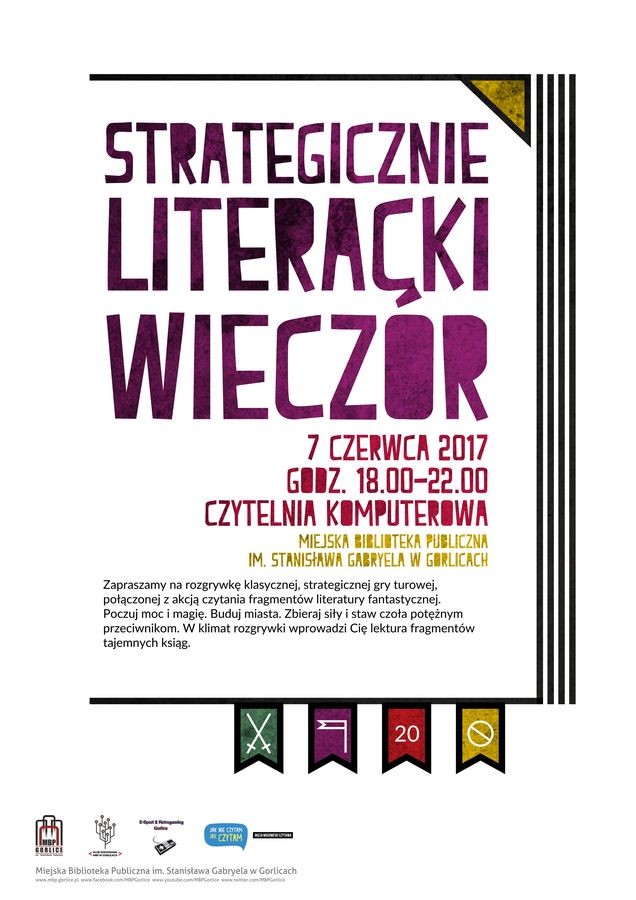 Miejska Biblioteka Publiczna im. Stanisława Gabryela w Gorlicach, Klub Kodowania MBP w Gorlicach oraz E-sport & Retrogaming Gorlice zapraszają na magiczny wieczór z klasyczną, strategiczną grą turową oraz sesję wspólnego, głośnego czytania fragmentów literatury fantastycznej. Poczuj moc i magię i przyjdź 7 czerwca 2017 r. do biblioteki! Rozpoczynamy o 18.00 w Czytelni Komputerowej MBP w Gorlicach.