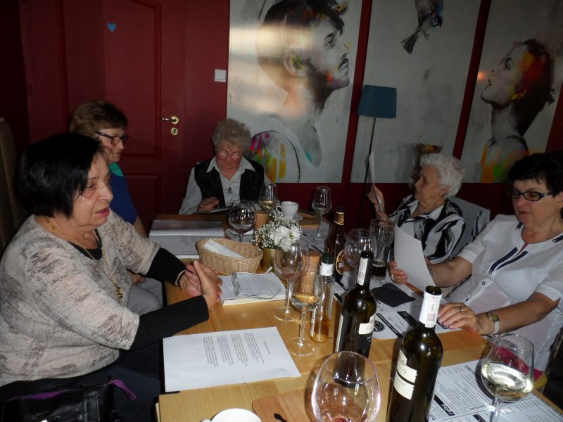 Książka wywołała ciekawą dyskusję na temat Gruzji. Czy jest to — jak sugerują autorzy — „szaszłyk, który łączy kawałki różnych gatunków?”. Według pani Urszuli „Gruzini mają dar upajania się słowami”, szanują tradycję i potrafią ją sprzedać, a Gruzja to kraj, w którym „tak naprawdę nikt nie jest sam”. Pani Elżbieta opowiedziała o Gruzji z perspektywy turystycznej, przywołała obraz Pirosmaniego Uczta, który jest symbolem tego kraju. Pani Danuta natomiast wspomniała postać królowej Tamary, a także przeczytała kilka gruzińskich anegdot. Według pana Leszka „książka jest świetnie napisana. Gruzja to kraj wspaniały, cudowny, życzliwi, choć wojowniczy ludzie. Niestety — zatraca się charakter tego państwa, obce trendy. Kraj jak na wulkanie, co doskonale oddali autorzy”. Głos zabrały też pani Barbara i pani Anna, które miały okazję odwiedzić to państwo. Zdaniem pani Barbary (była w Gruzji w czasach ZSRR) „tam można było wszystko, Gruzini to wolny naród”. Pani Anna zwiedziła ten kraj dwa lata temu, dlatego mieliśmy okazję obejrzeć album współczesnych zdjęć dokumentujących państwo, o którym rozmawialiśmy. Opowiedziała także o lokalnych potrawach, których próbowała. Klubowicze odnieśli się również do powszechnego pijaństwa — według pana Leszka Gruzini mają cztery żołądki, a pani Anna stwierdziła, że tam „od niemowlaka przyzwyczaja się do picia alkoholu”. Toasty wznosili gruzińskim winem również Klubowicze. Był także akcent muzyczny podczas naszego literackiego spotkania — dzięki panu Leszkowi i jego ukulele mogliśmy przenieść się do Gruzji, słuchając Piosenki gruzińskiej śpiewanej, a jakże, przez Klubowiczów.