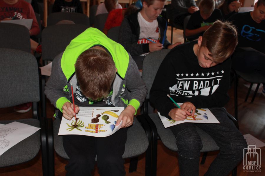 Jakiego języka używają mieszkańcy Czarnego Lądu? Jak wyglądają, mieszkają i czym zajmują się Masajowie? Prowadząca warsztaty pokazała uczniom niezwykłe zdjęcia ukazujące piękno i różnorodność regionów Afryki, krajobrazów, grup etnicznych, budynków, targów — labiryntów uliczek ze sklepikami wypełnionymi po brzegi najróżniejszymi towarami, gdzie mieszają się zapachy i kolory, zwierząt, roślin, a nawet charakterystycznych potraw (fufu samosy, mandazi). Dowiedzieli się czym jest matatu — najszybszy na ulicach Afryki Wschodniej środek lokomocji, piki piki — motocyklowa taksówka czy boda boda. Mogli również zobaczyć oryginalne kangi — wielokolorowe tkaniny, które można wykorzystać na różne sposoby — jako strój, torbę, koc czy obrus; tykwę — roślinę z rodziny dyni, której zdrewniały owoc wykorzystuje się jako naczynie; przymierzyć masajski naszyjnik; zobaczyć maskę i tarczę wojownika; figurki i zabawki dziecięce oraz nauczyć się kilku słów w języku suahili, który wykorzystali twórcy popularnej animacji Król Lew. By utrwalić informacje, uczestnicy zajęć rozwiązali krzyżówkę, mieli także za zadanie rozpoznać, po dźwiękach przez nie wydawanych, afrykańskie zwierzęta. „Asante sana” — dziękujemy Monice Bryzek za to interesujące spotkanie.