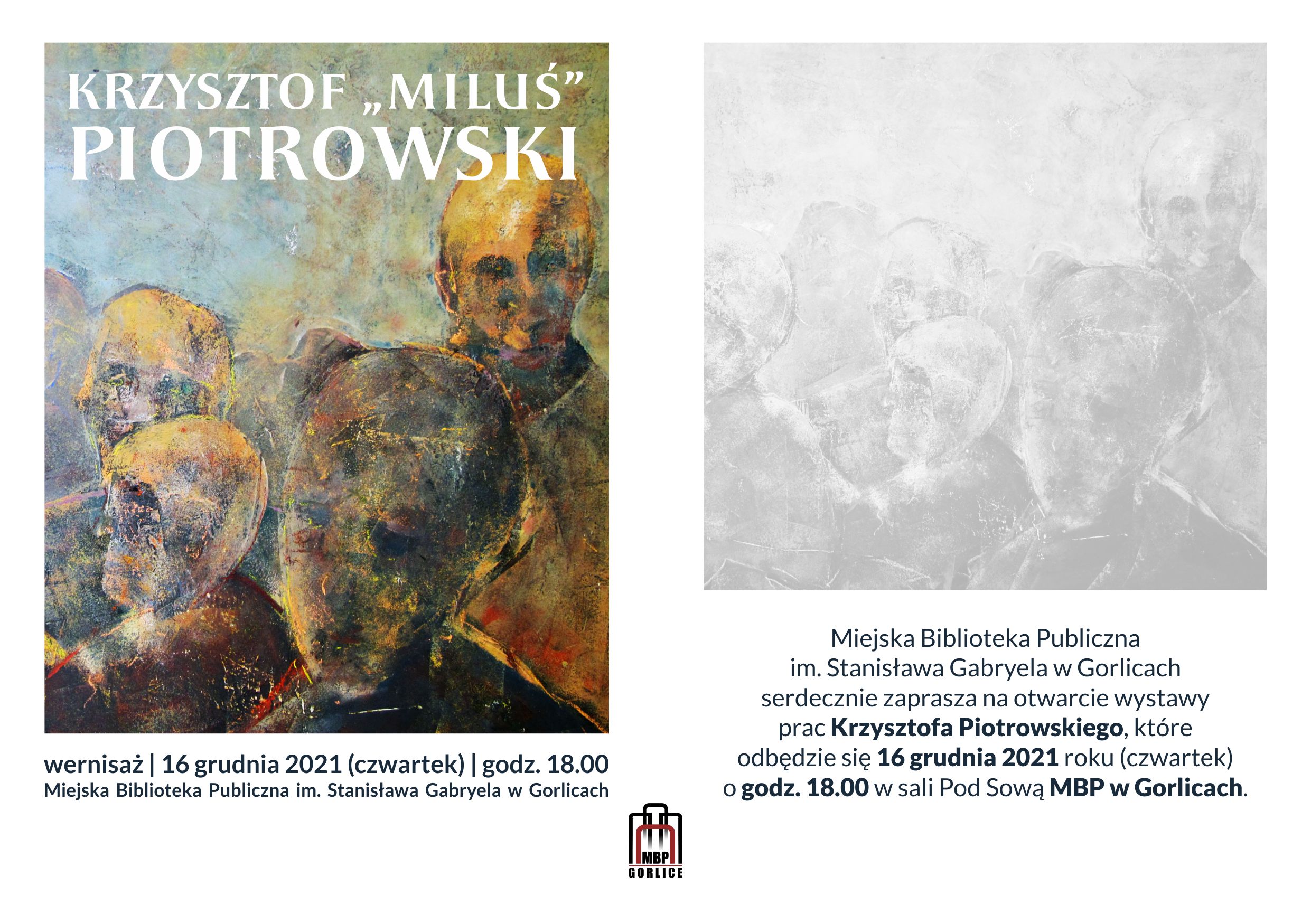 Zapraszamy na wernisaż wystawy prac Krzysztofa „Milusia” Piotrowskiego, który odbędzie się 16 grudnia 2021 roku (czwartek) o godz. 18.00, w sali Pod Sową MBP w Gorlicach.