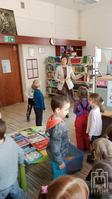 Biblioteczne spotkanie z grupą Smerfów z Miejskiego Przedszkola nr 1 w Gorlicach tym razem rozpoczęliśmy od wizyty w Wypożyczalni dla Dzieci i Młodzieży. Maluchy dowiedziały się tam jak wygląda układ księgozbioru na półkach i jakie lektury są dla nich odpowiednie. Wielu z nich posiada już karty biblioteczne więc ta wiedza z pewnością im się przyda, a kto jeszcze nie zapisał się do biblioteki, mamy nadzieję, że wkrótce to nadrobi. Następnie przeszliśmy do Czytelni dla Dzieci, by tam kontynuować lekcję biblioteczną na temat książki i biblioteki. Po obejrzeniu prezentacji przedszkolaki dowiedziały się jak wygląda droga książki do czytelnika i ilu ludzi pracuje nad tym, by dana publikacja mogła trafić na księgarskie czy biblioteczne półki. Nasi mali goście z przyjemnością wysłuchali także opowiadania z magicznej skrzynki Kamishibai pt. Szukając Marudka. Na koniec pokolorowali obrazki z wizerunkami ulubionych postaci z bajek.