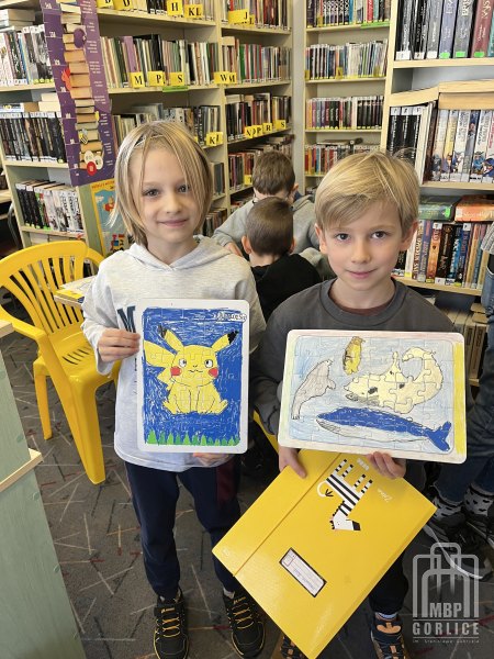 Akcja „Ferie w Bibliotece 2025” w filii Zawodzie dobiegła końca. Był to czas wypełniony kreatywnymi zajęciami, z których młodsi gorliczanie chętnie korzystali. Dzieci uczestniczyły w kreatywnych zajęciach, które rozwijały wyobraźnię i były okazją do znakomitej zabawy. Na pierwszym, niezwykle emocjonującym spotkaniu, wspólnie tworzyliśmy przepełnione miłością i wdzięcznością „laurki-serduszka” dla dziadków. Własnoręcznie wykonane dzieła sztuki, podarowane z okazji Dnia Babci i Dnia Dziadka, z pewnością sprawiły radość seniorom. Na kolejnych zajęciach pn. „Grupa krwi” uczestnicy grali w grę edukacyjną, dzięki której zdobyli cenną wiedzę o grupach krwi i ich znaczeniu. Poprzez zabawę w dopasowywanie alleli najmłodsi czytelnicy uczyli się w jaki sposób dopasowywana jest krew do krwi potrzebującego pacjenta oraz dowiedzieli się jak ważne jest honorowe krwiodawstwo. Odbyły się także zajęcia literacko-edukacyjne, w czasie których świętowaliśmy Międzynarodowy Dzień Puzzli. Dzieci zainspirowane ulubionymi bohaterami literackimi, stały się autorami własnych, unikatowych układanek. Na zakończenie ferii odbyło się spotkanie pod hasłem „Ferie dla mózgu”, w czasie którego rozwiązywaliśmy łamigłówki, graliśmy w gry planszowe, logiczne oraz w kalambury. Był to niezwykle radosny czas, w którym nie zabrakło zdrowej rywalizacji oraz integracji z dziećmi uczęszczającymi do osiedlowej świetlicy OK3M GCK.