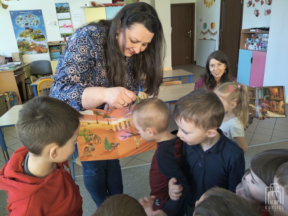 W czasie, gdy dzieci słuchały historii, przeglądały książki, które pobudzały ich wyobraźnię. Wśród propozycji znalazły się bogato ilustrowane baśnie o zamkach, księżniczkach i rycerzach, a także książka z okienkami o bezkresnym kosmosie, pracy kosmonautów i dalekich podróżach statkiem kosmicznym. Prawdziwy zachwyt wzbudził prehistoryczny świat dinozaurów, przedstawiony w ogromnej książce typu pop-up, pt. Groźne dinozaury. Publikacja po otwarciu nie tylko ukazywała trójwymiarowe makiety gadów, ale również wydawała realistyczne, groźne dźwięki. Kolejną niespodzianką były interaktywne książki z wbudowaną latarką. Magiczne światełko umożliwiło przedszkolakom odkrywanie ukrytych na stronach sekretów mieszkańców dzikiej dżungli oraz tajemniczych stworzeń głębin oceanu.