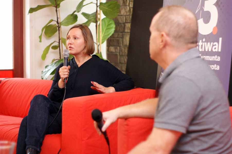 Ostatni dzień gorlickiego święta literatury spędziliśmy w Miejskiej Bibliotece Publicznej. Pięć spotkań, czterech wybitnych twórców słowa, trzech hauptologów oraz gość specjalny — Arthur Haupt, syn patrona Festiwalu. Festiwalu, który już trzeci rok z rzędu skupia miłośników dobrej literatury w gorlickiej przestrzeni — tak w skrócie można podsumować ostatni dzień Festiwalu im. Zygmunta Haupta. Niedzielne popołudnie rozpoczęliśmy od spotkania z Magdaleną Czyńską — pisarką, dziennikarką, historykiem sztuki i kuratorką wystaw. Podczas rozmowy z Karolem Maliszewskim nasz gość snuł opowieść o Katarzynie Kobro — jednej z najwybitniejszych rzeźbiarek w dwudziestoleciu międzywojennym, przez długie lata pozostającej w cieniu swojego męża Władysława Strzemińskiego. Kolejnym gościem Festiwalu był Waldemar Bawołek — pisarz dobrze znany gorlickiej publiczności, który tym razem opowiedział w rozmowie z Andrzejem Stasiukiem o swojej najnowszej książce Echo słońca, będącej historią o przeciętnych Polakach. Bronka Nowicka — zeszłoroczna laureatka Nagrody Literackiej Nike, którą otrzymała za książkę Nakarmić kamień — w rozmowie z Moniką Stopczyk zaprezentowała wiersze ze swojego nagrodzonego debiutu oraz utwory zupełnie nowe. Następnie Andrzej Stasiuk ponownie pojawił się na scenie, tym razem zapraszając do rozmowy Karola Maliszewskiego — krytyka literackiego, poetę i prozaika. Ich rozmowa skupiła się wokół wydanej cztery lata temu książki Przemyśl–Szczecin, będącej opowieścią z drogi i historiami ludzi, których można spotkać w pociągu. Zwieńczeniem trzeciej edycji Festiwalu im. Zygmunta Haupta było spotkanie tematyczne z udziałem badaczy życia i twórczości patrona Festiwalu. W rozmowie wzięli udział prof. Aleksander Madyda, dr hab. Andrzej Niewiadomski, dr Paweł Panas oraz gość specjalny — Arthur Haupt, syn patrona Festiwalu, który gościł w Gorlicach już drugi raz. Tematem spotkania była zachowana korespondencja, jaką Zygmunt Haupt pisał i jaką otrzymywał.